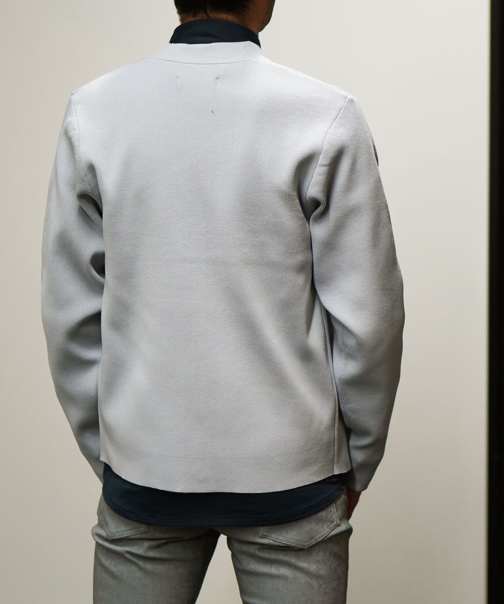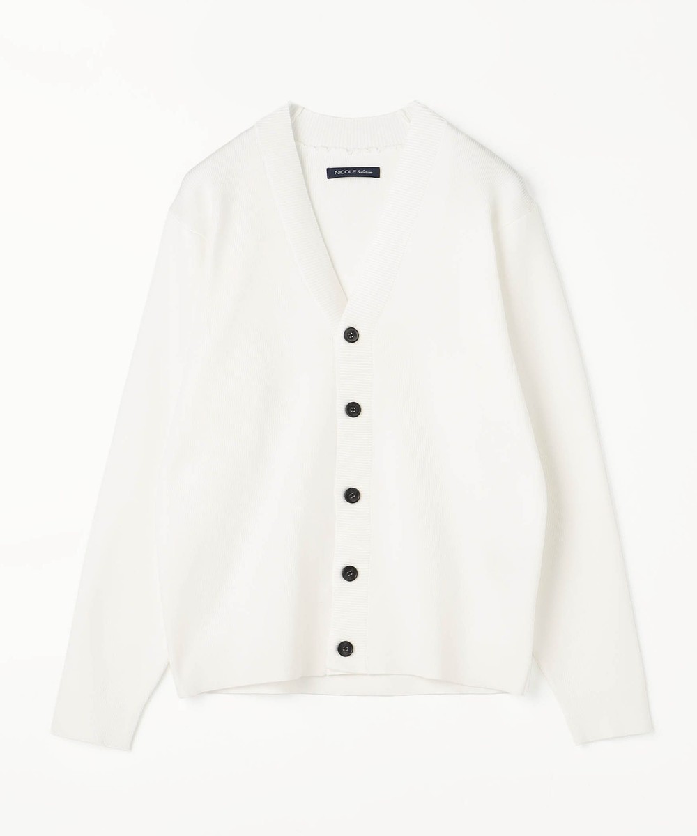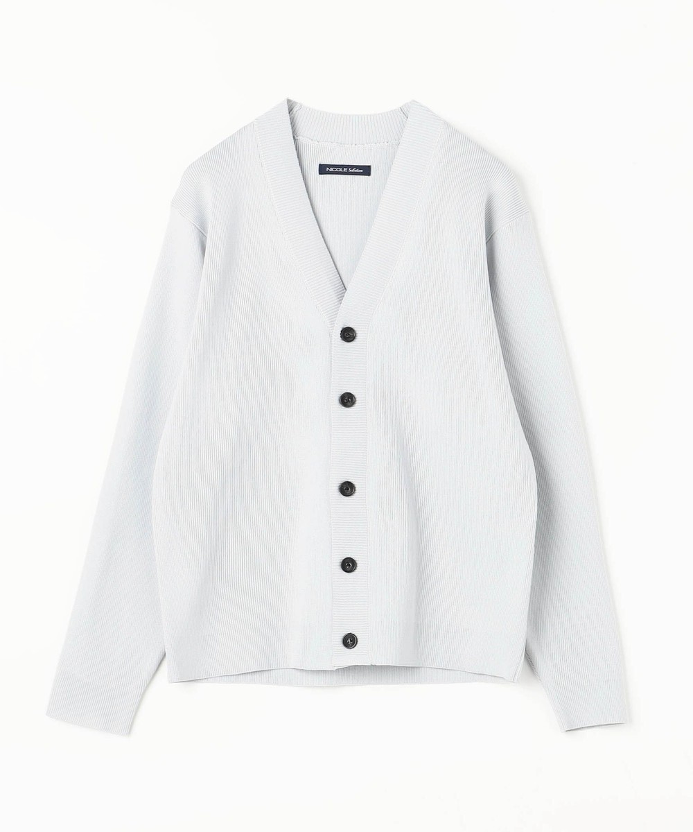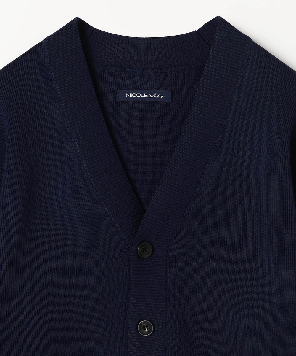 高収縮ポリエステル糸を使用し14ゲージというハイゲージで編み立てたカーディガンになります。