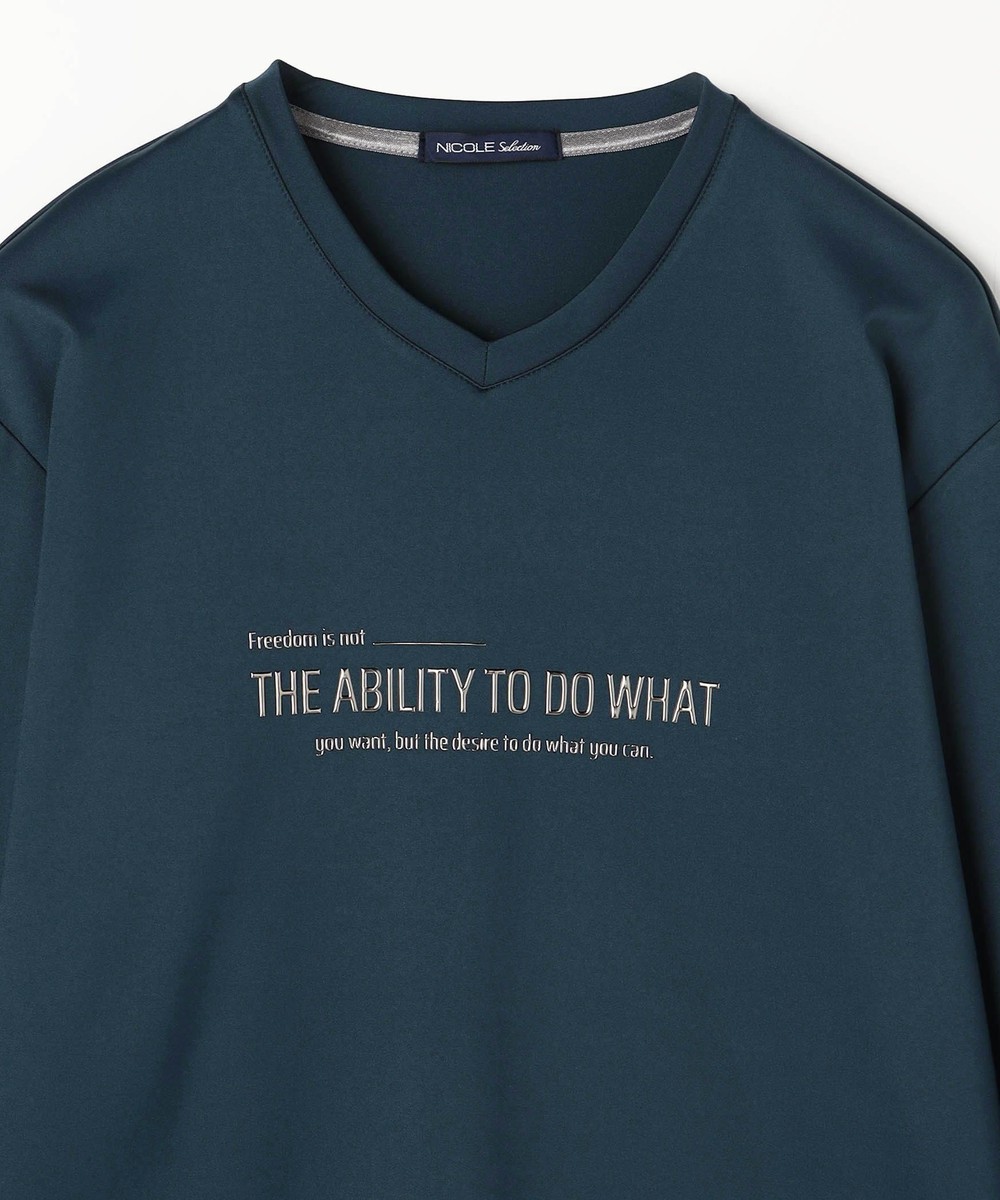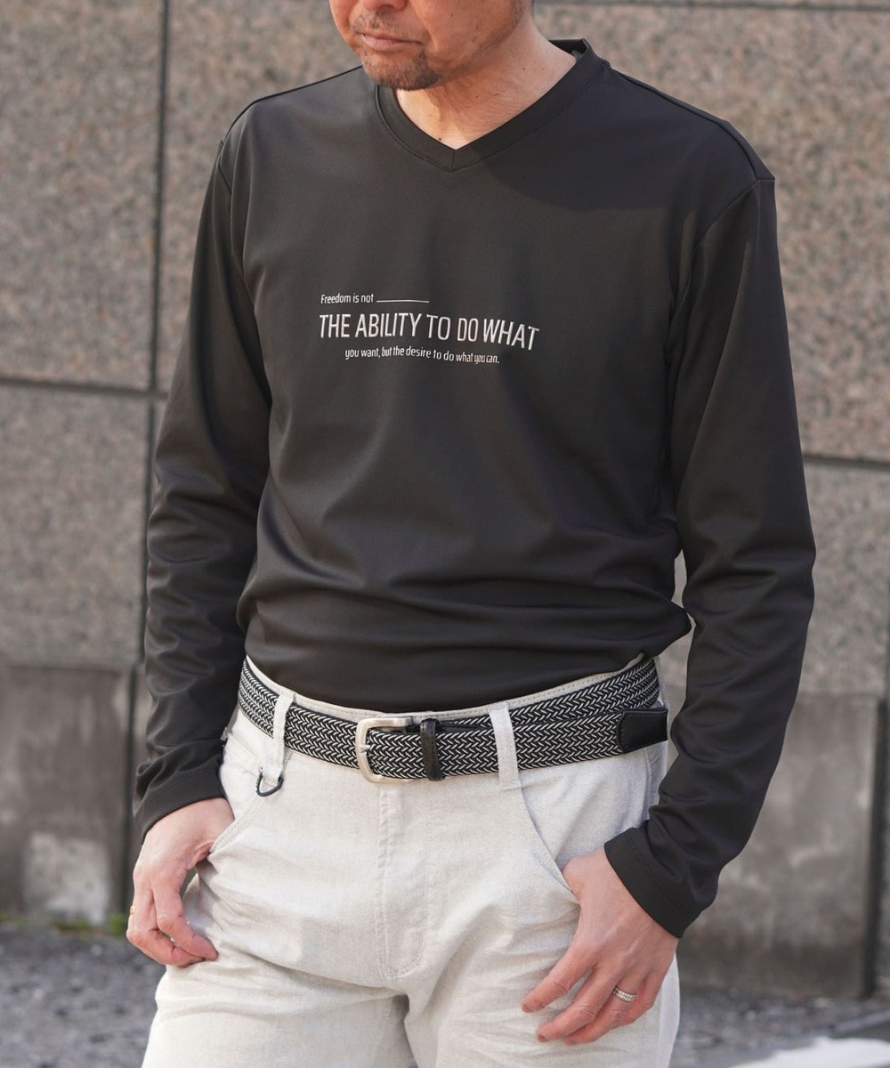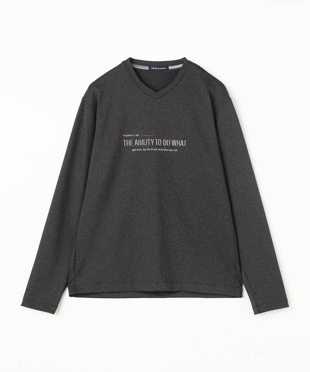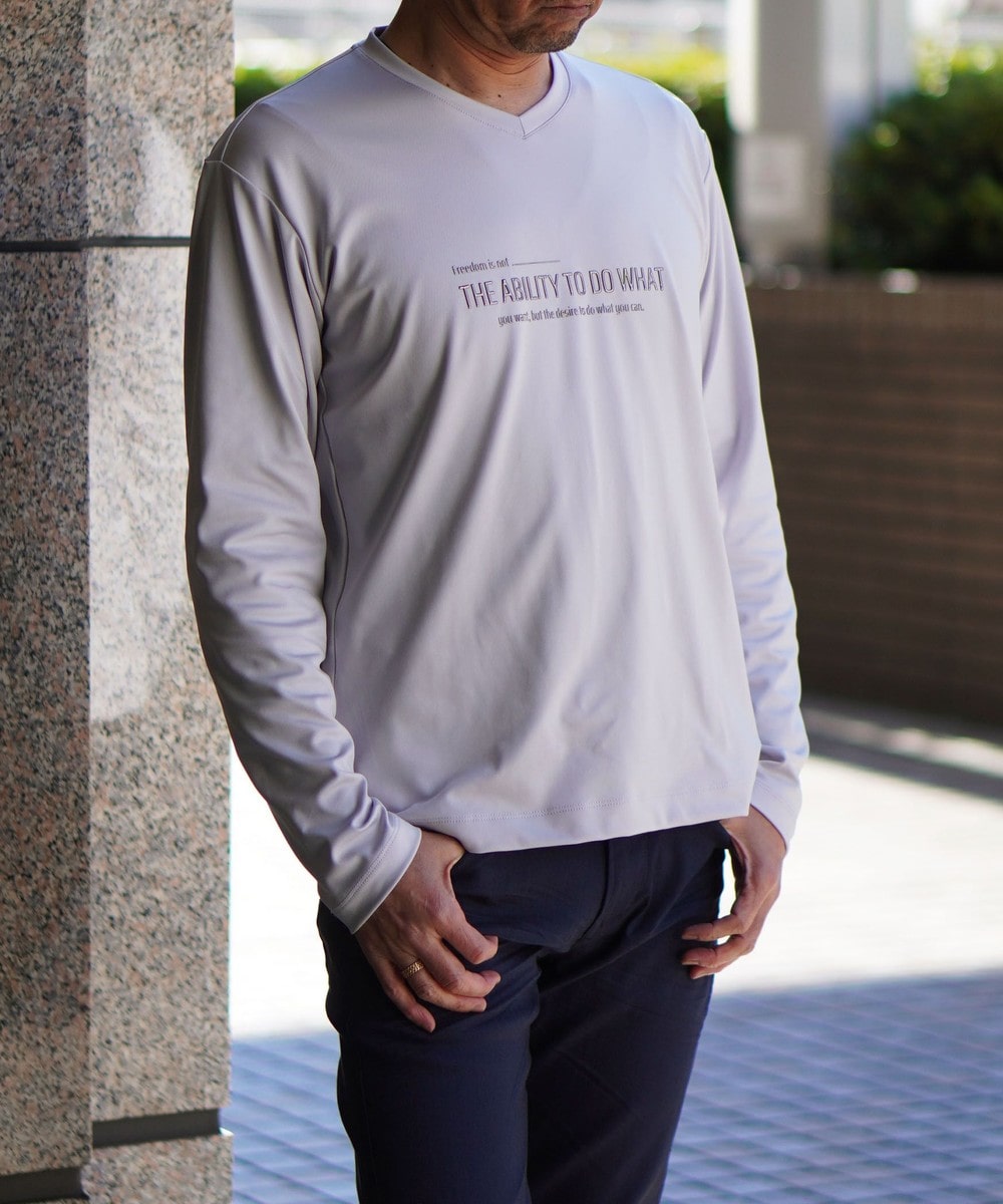 シャープな印象をあたえるメタルジェルプリントが特徴のVネック長袖Tシャツになります。