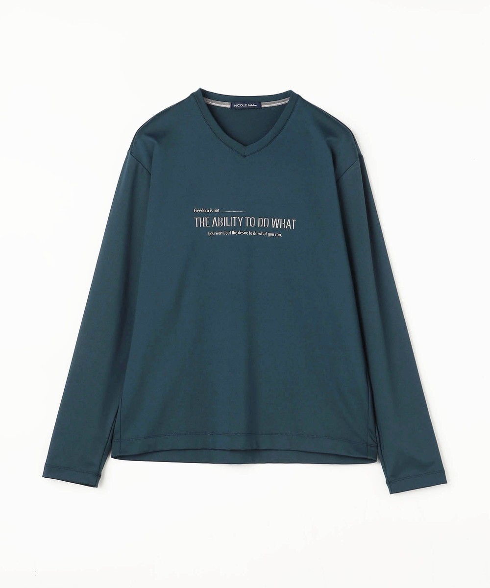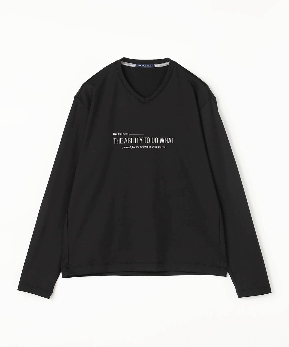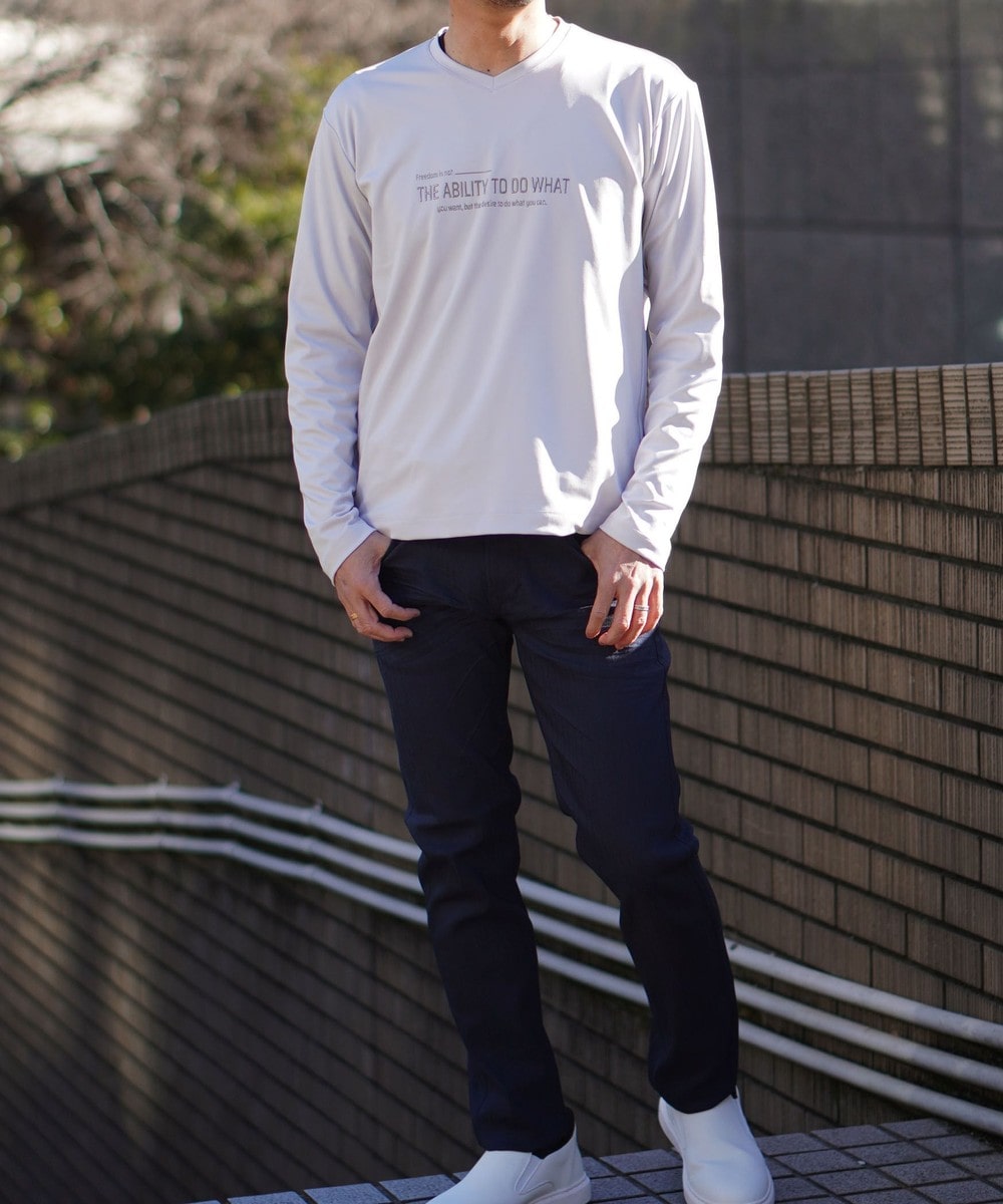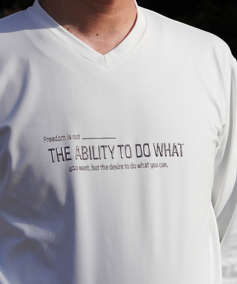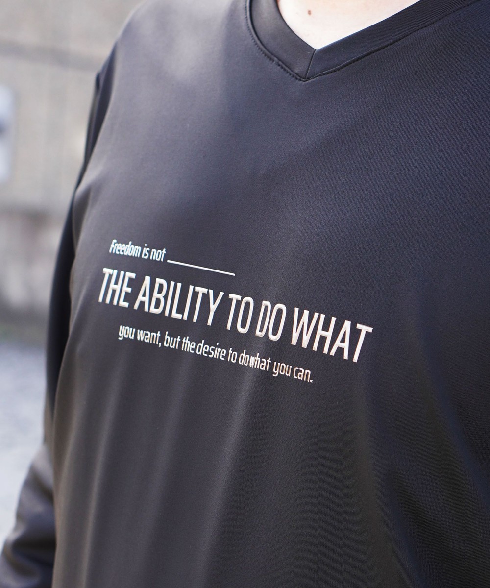 シャープな印象をあたえるメタルジェルプリントが特徴のVネック長袖Tシャツになります。