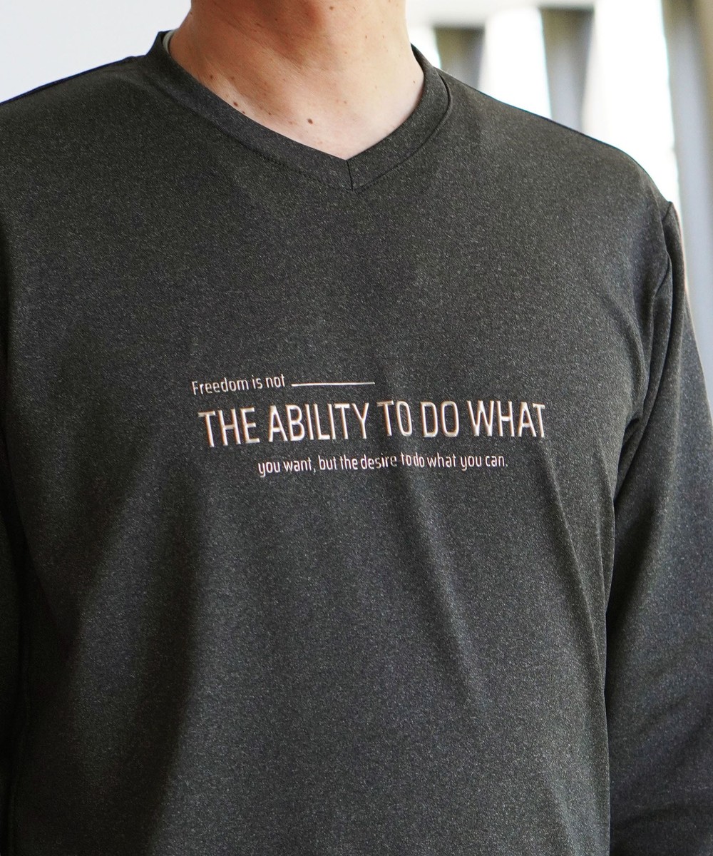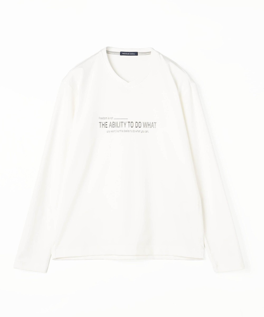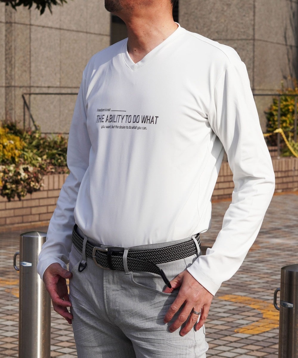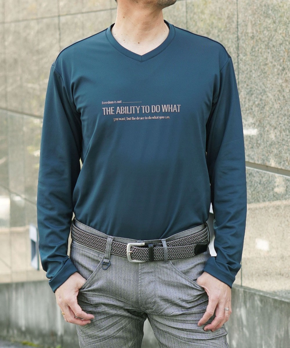 シャープな印象をあたえるメタルジェルプリントが特徴のVネック長袖Tシャツになります。