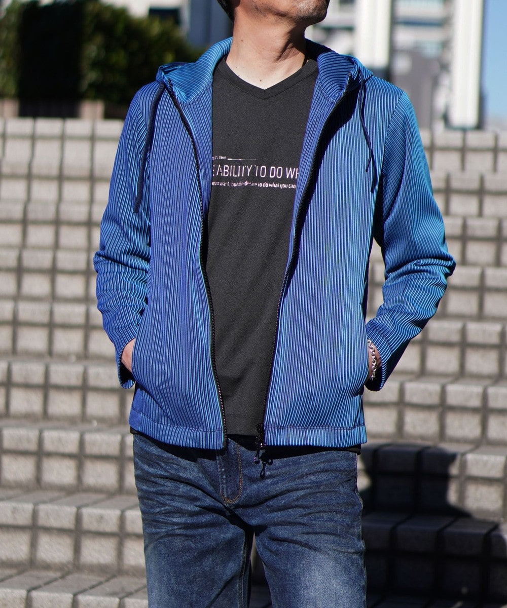立体的な綺麗なシルエットのジップアップパーカーになります。