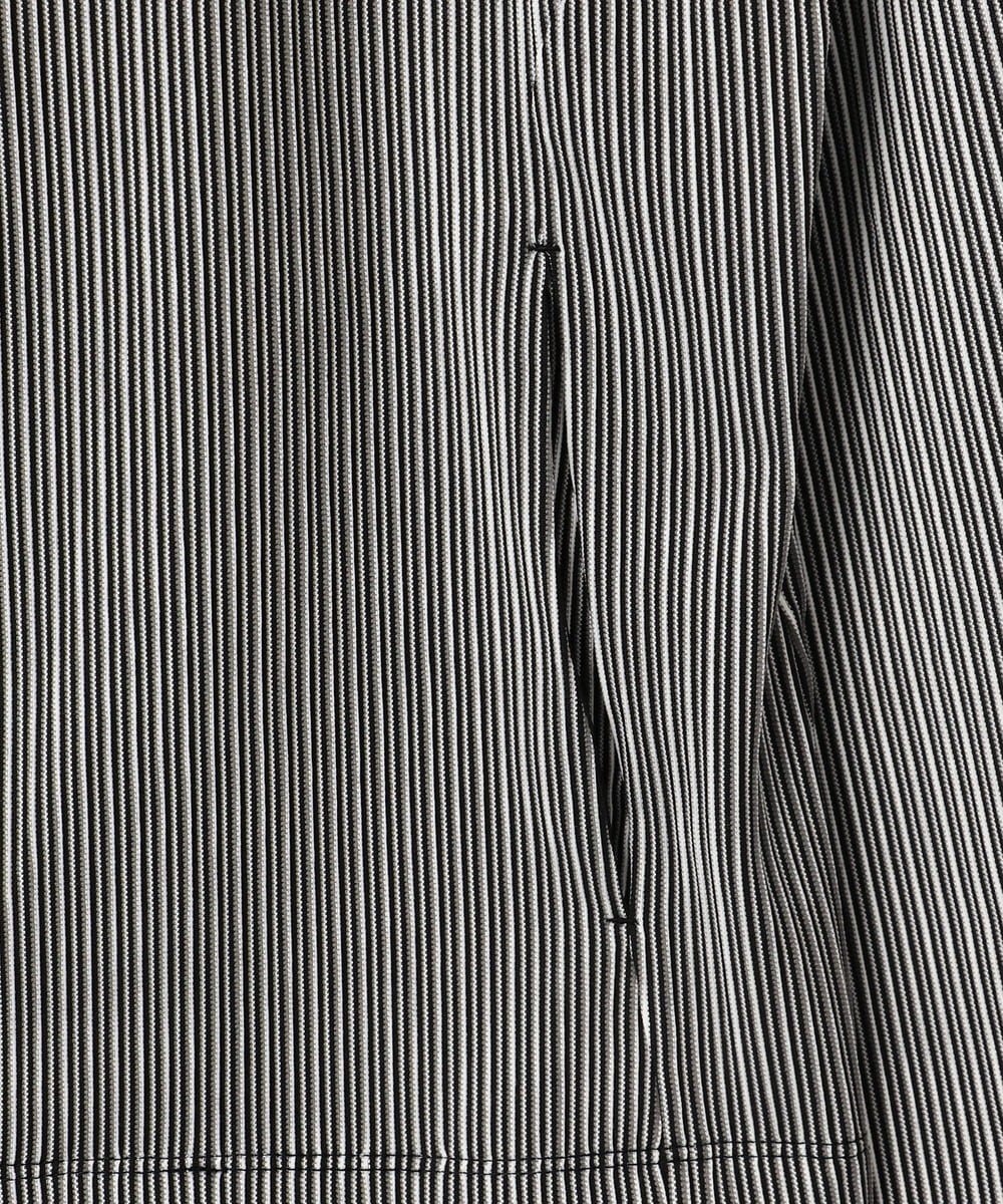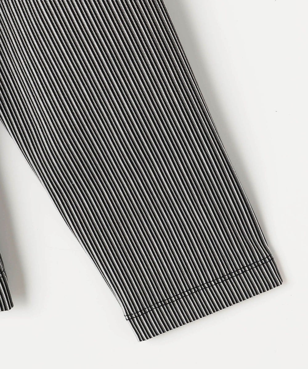 多色の先染めポリエステル糸で表現した色鮮やかなタックボーダー素材になります。軽くて張りがありスポーツウエアの様な快適な着用感が特徴。速乾性と防シワ性にも優れています。