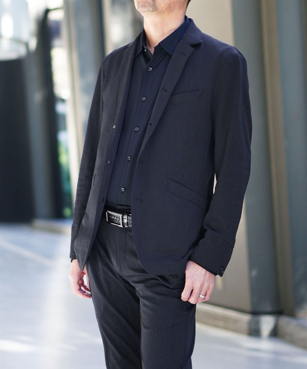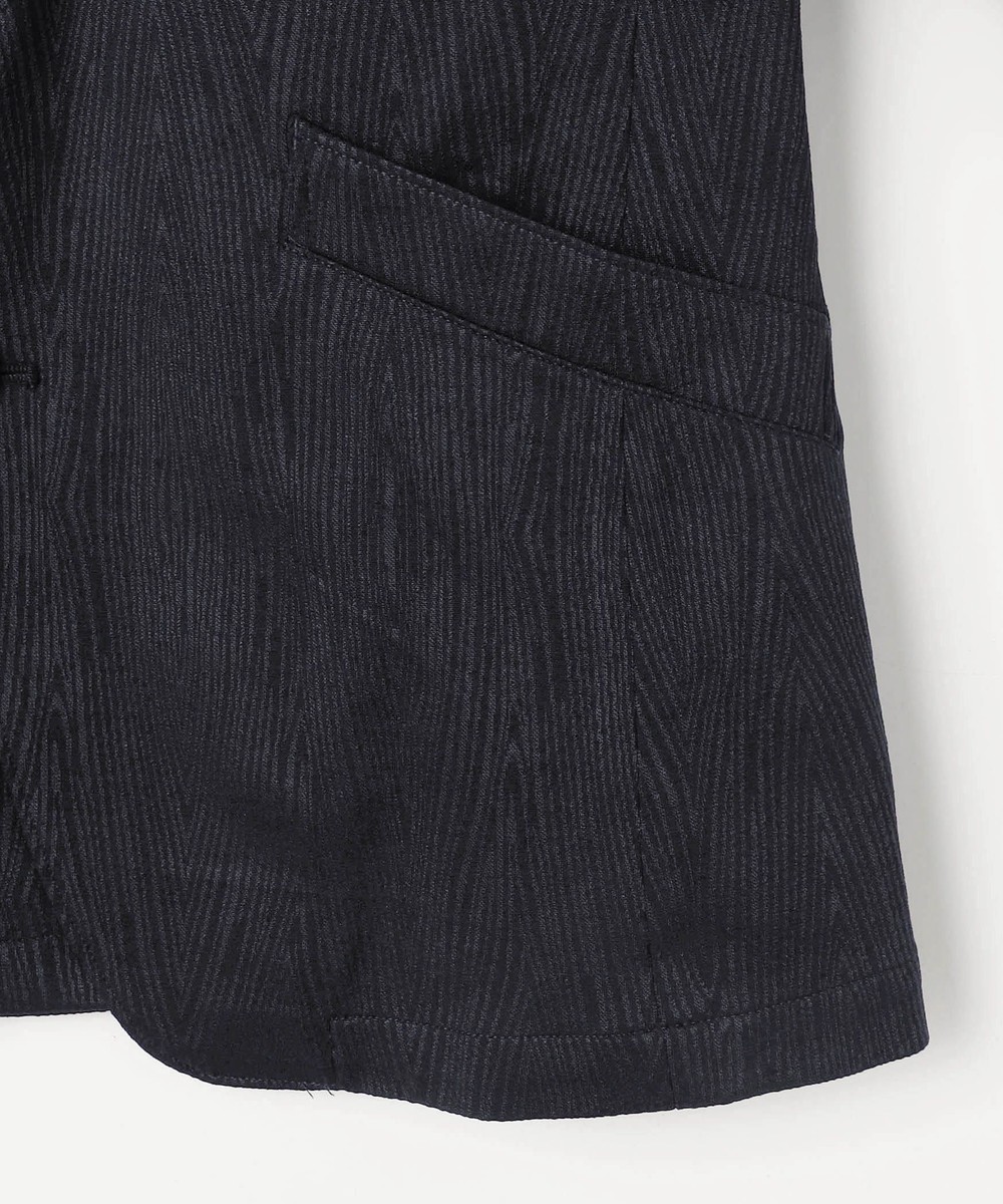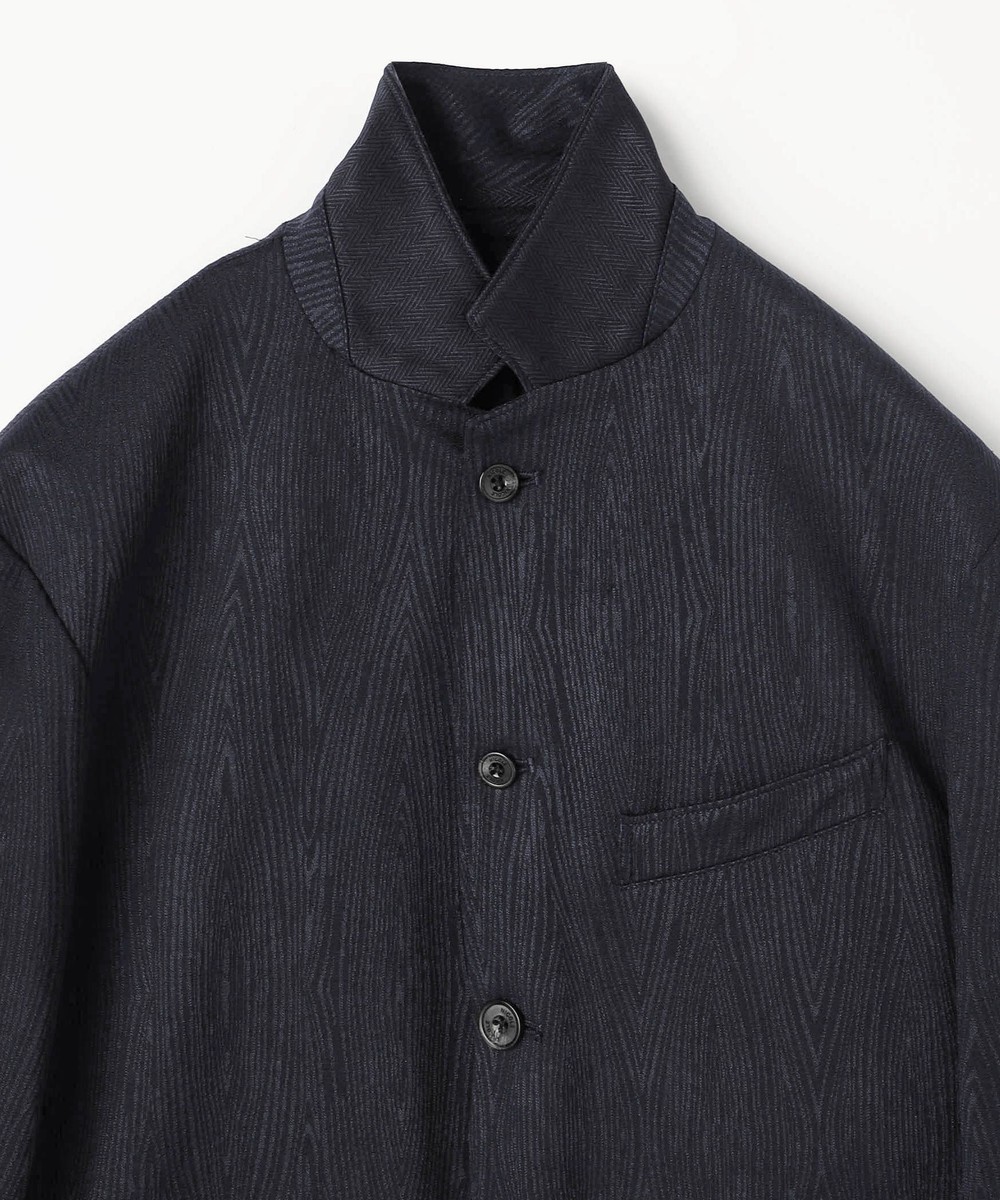 衿端にワイヤーを入れることで折り返してラペルとしても綺麗に収まるつくりとなっているので1着で2通りの着方が楽しめるジャケットとなっています。