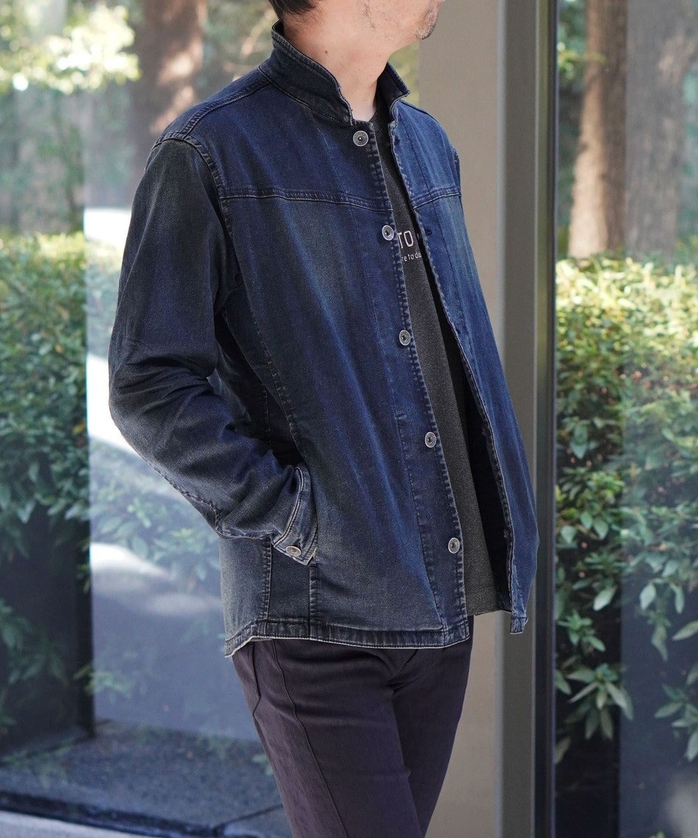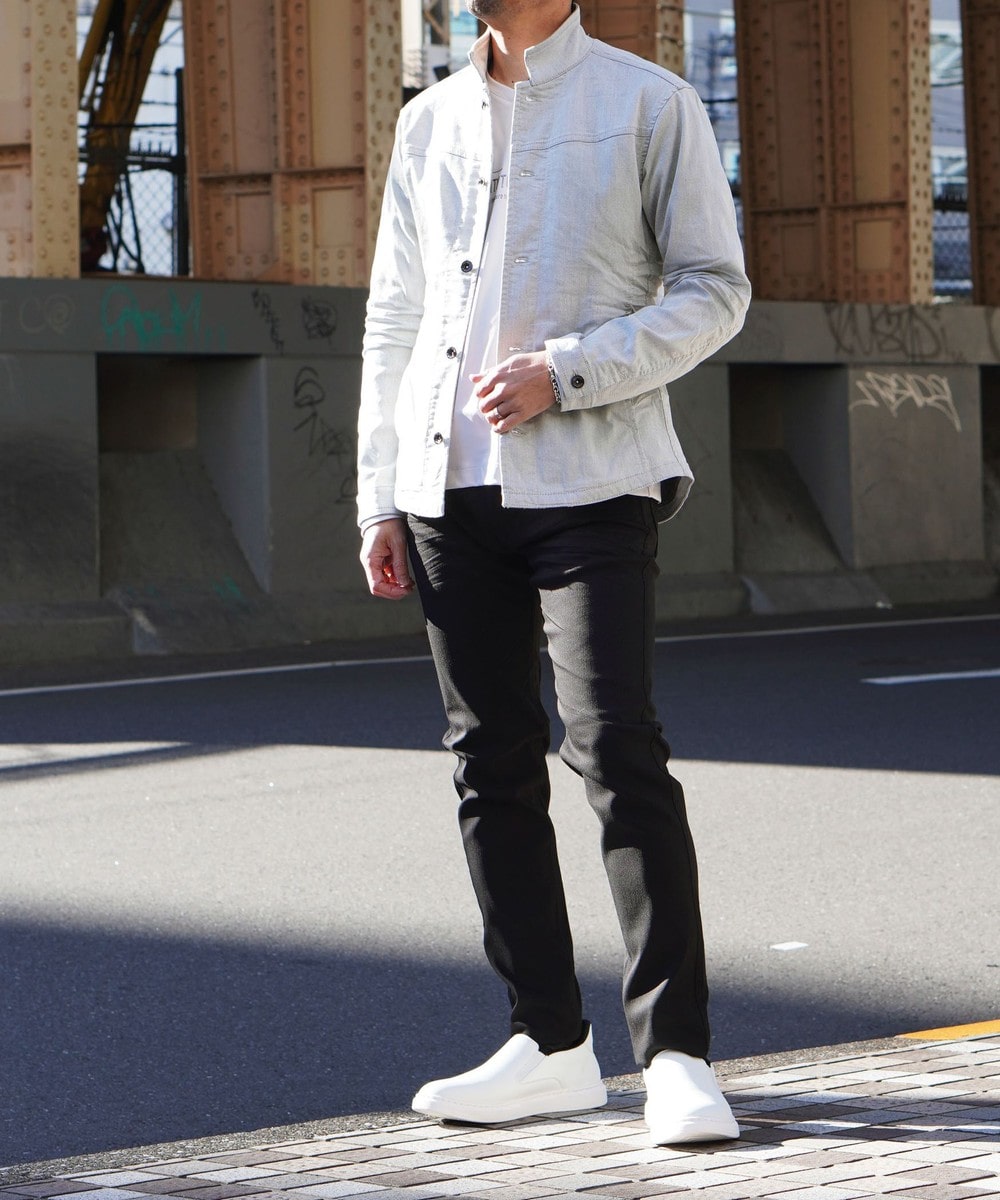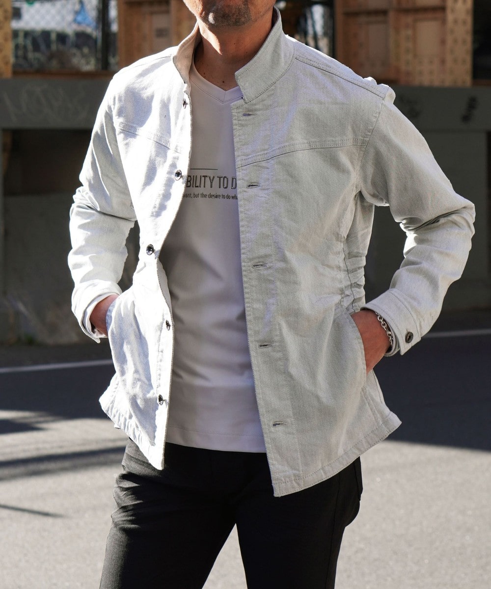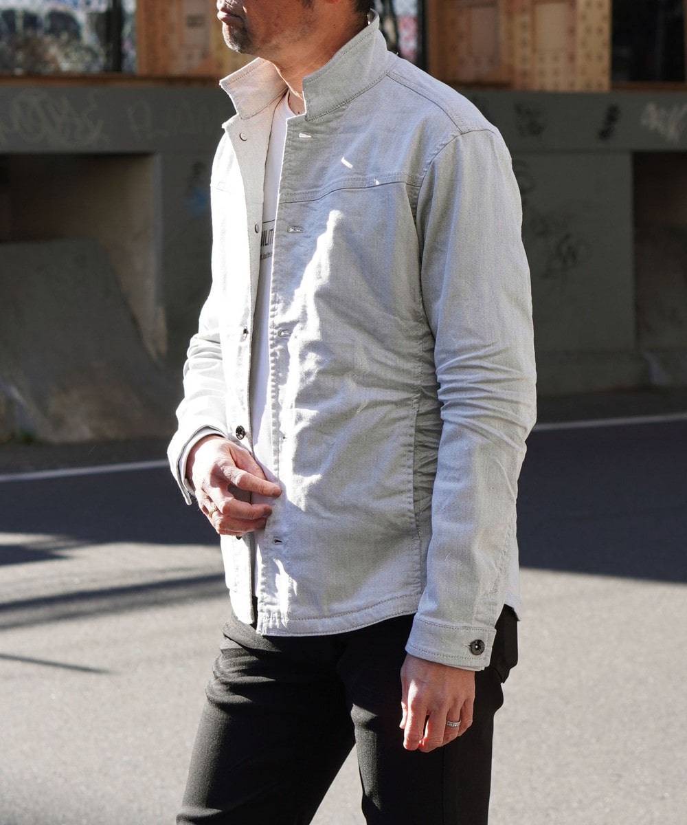 Gジャン感覚の一重で軽く羽織れるスタンドシャツブルゾンとなります。