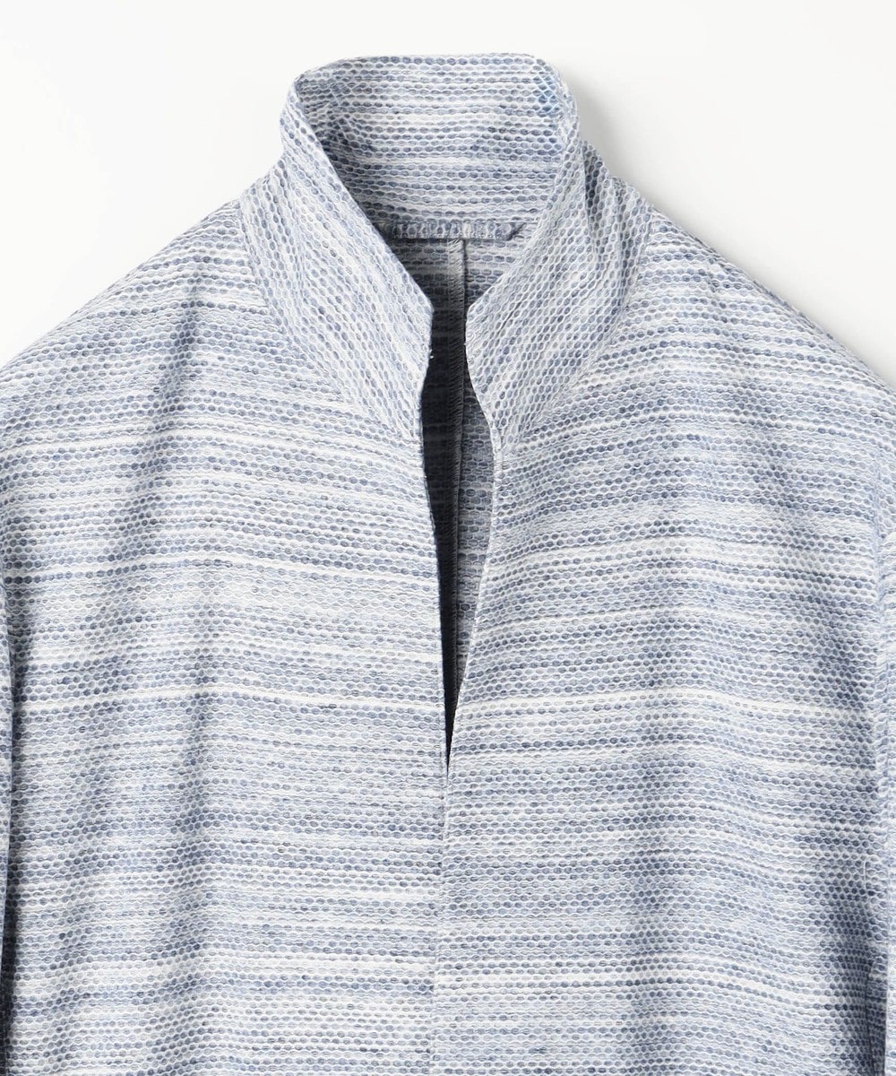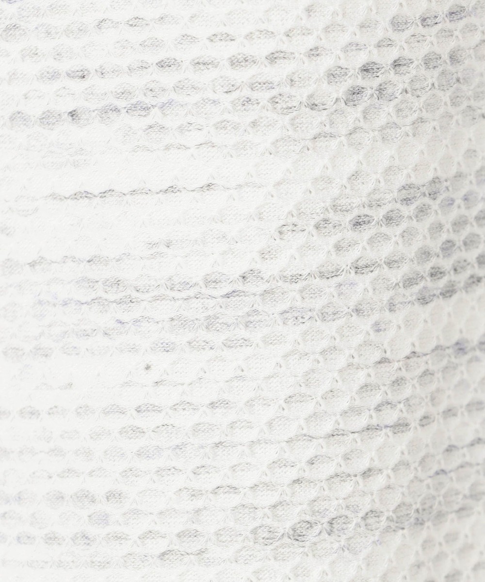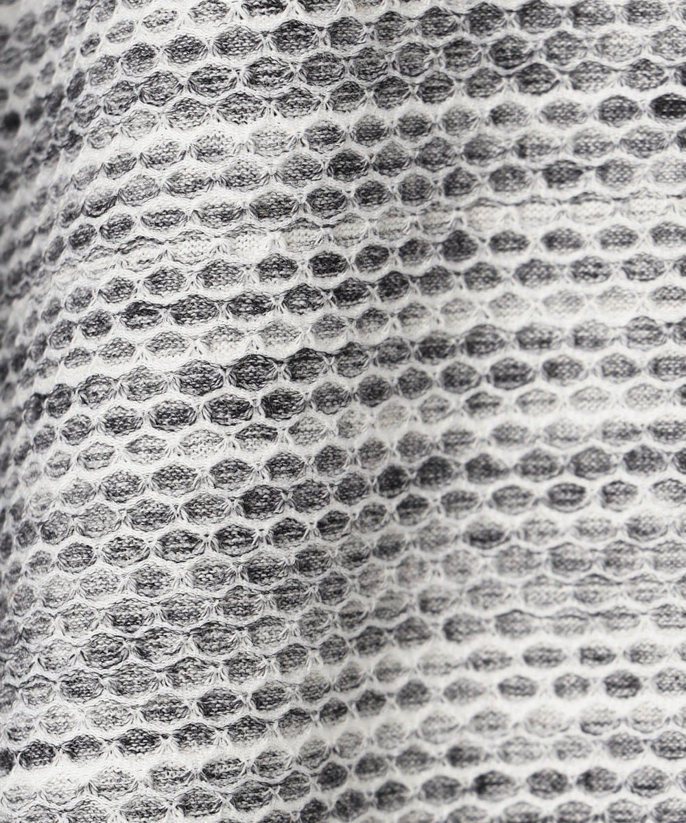 ポリエステルと綿糸の不規則な引き揃えと片染めにより、独特なメランジ感を表現したハニカムジャカ-ド生地になります。ポリウレタン混によりストレッチ性も高めている為、快適な着用感も実現しています。