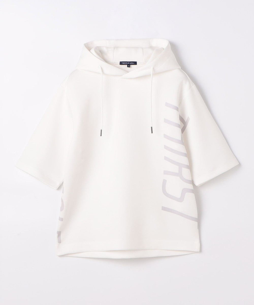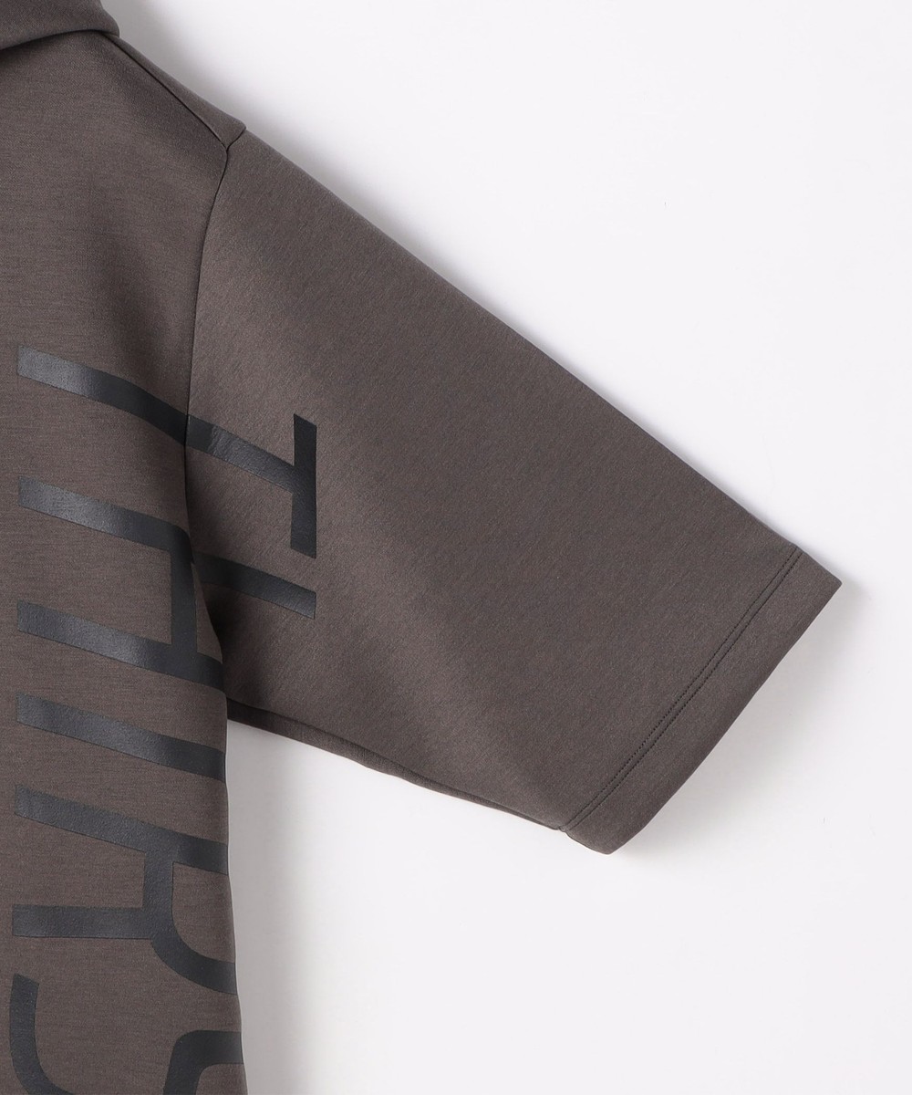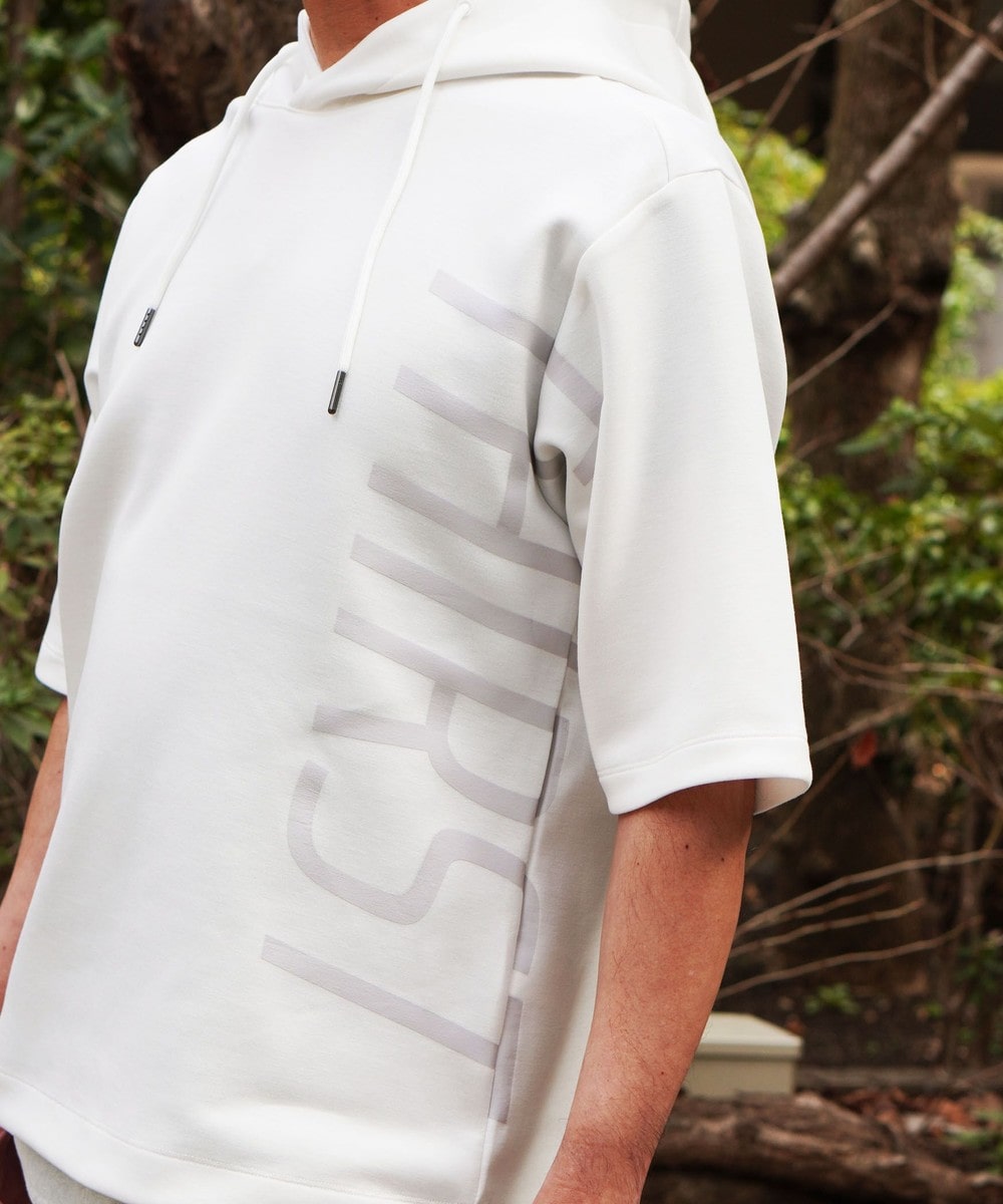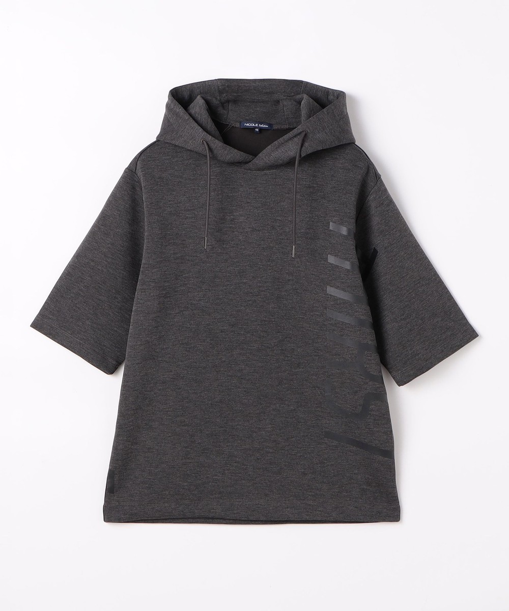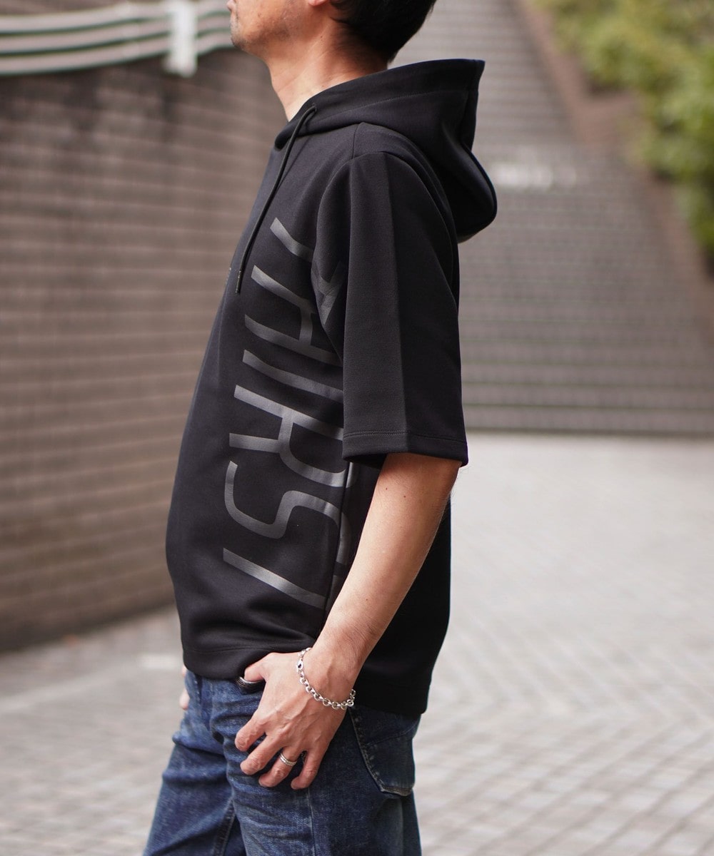 ゆったりとしたシルエットに左右脇を跨ぐプリントが目を引く5分袖フーデットパーカー。羽織のインナーとしても1枚で着ても様になるアイテムとなっています。