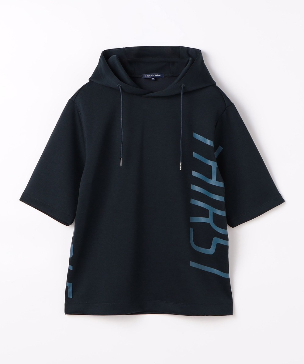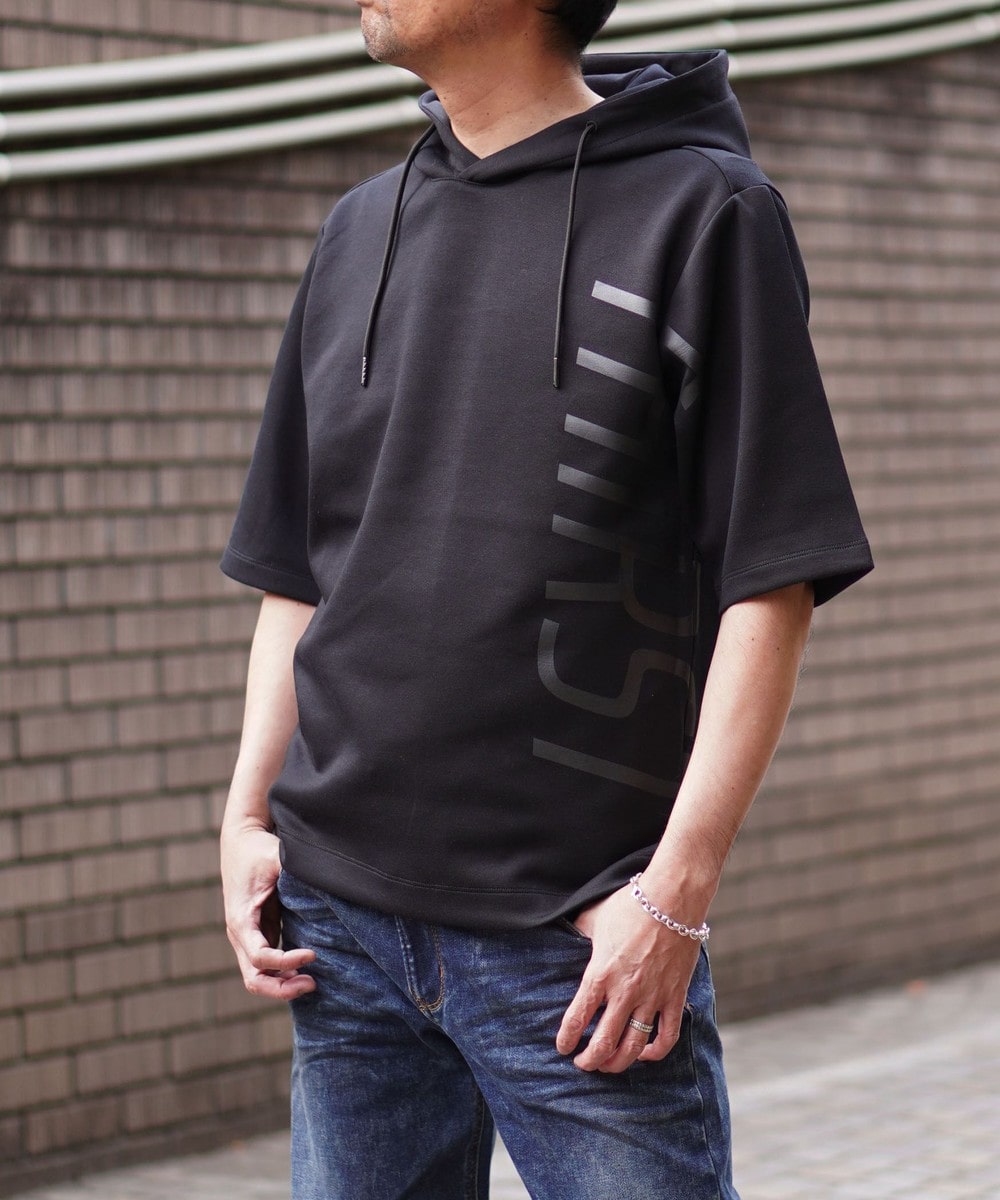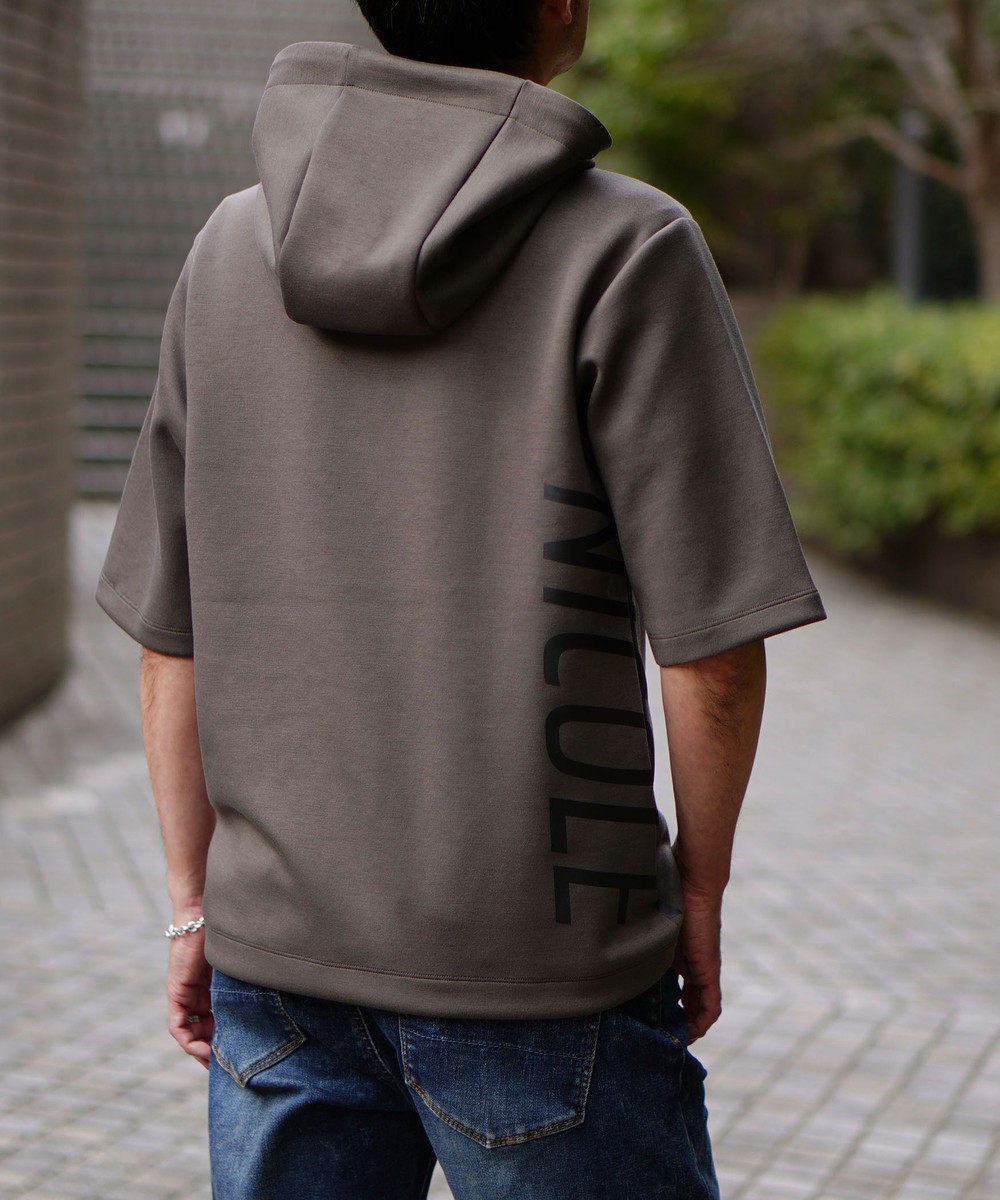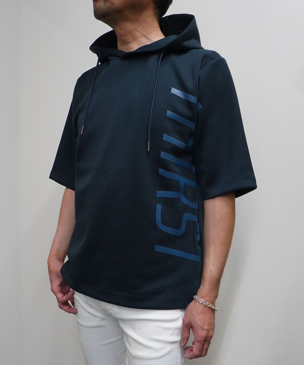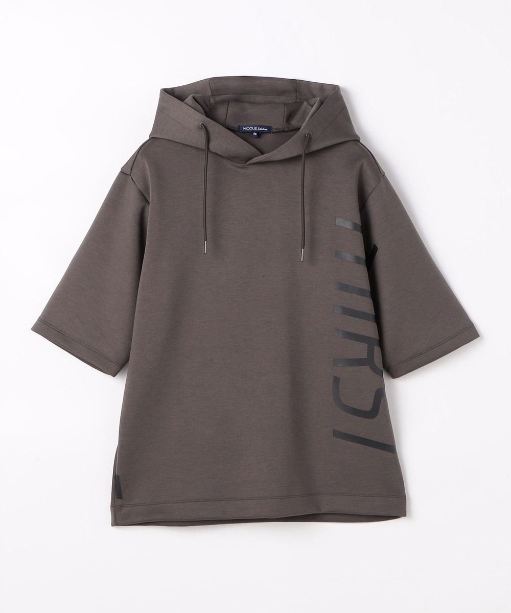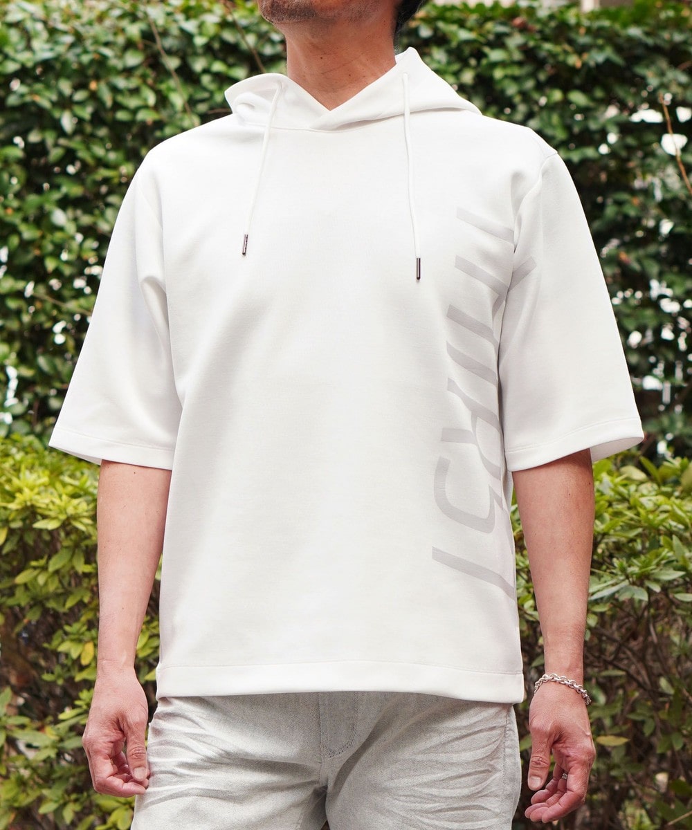 ゆったりとしたシルエットに左右脇を跨ぐプリントが目を引く5分袖フーデットパーカー。羽織のインナーとしても1枚で着ても様になるアイテムとなっています。