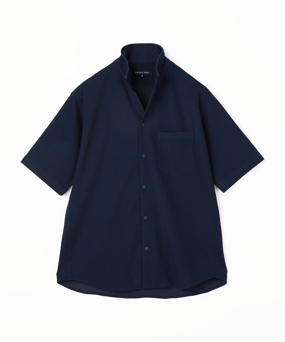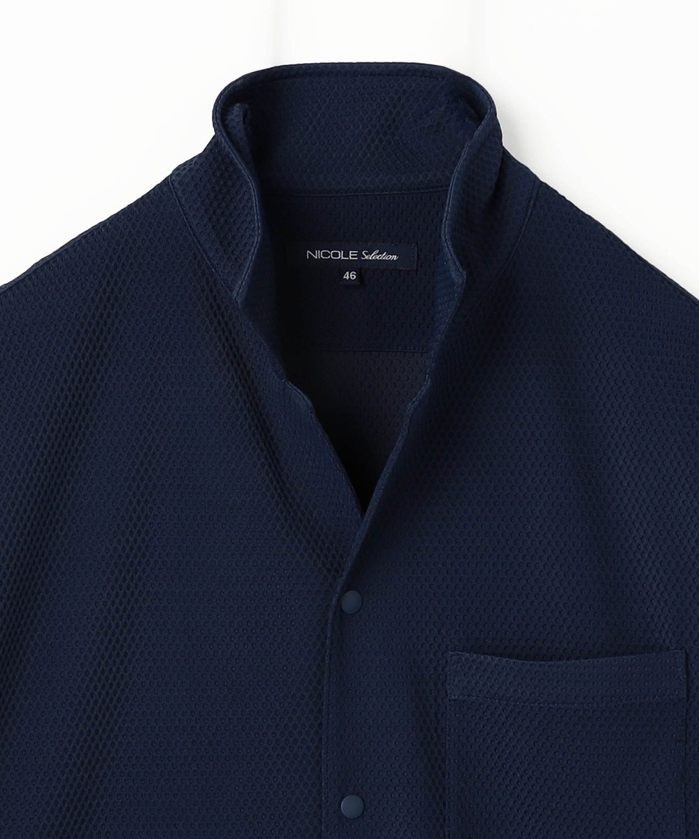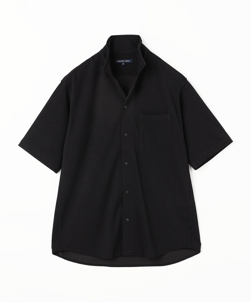 衿を立てても開いても着用出来るスタンドカラー半袖シャツです