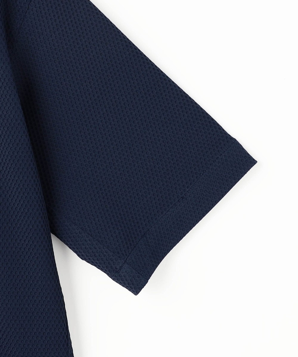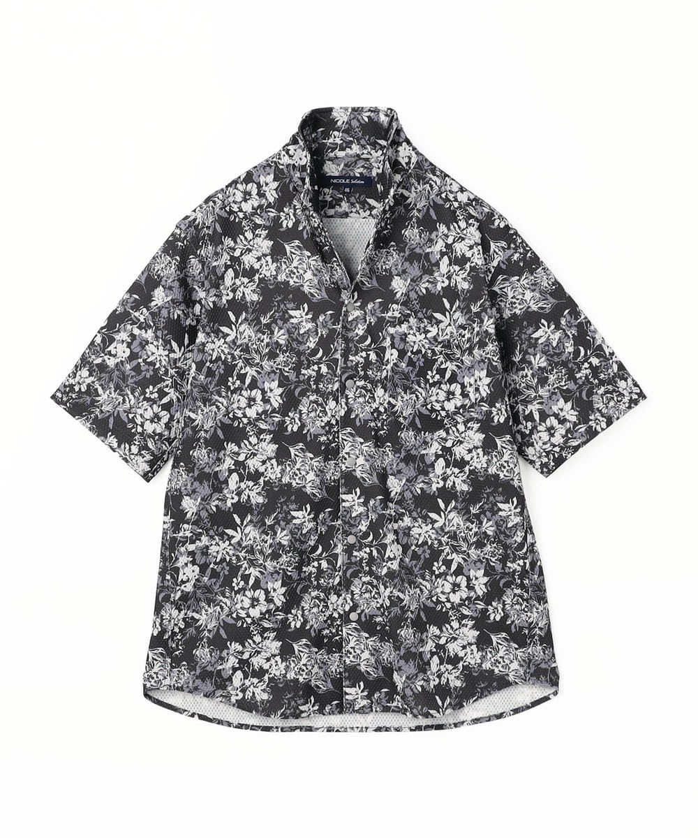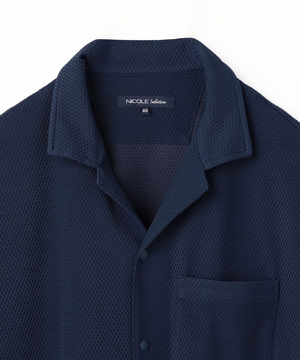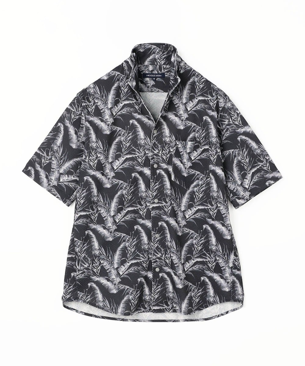 衿を立てても開いても着用出来るスタンドカラー半袖シャツです