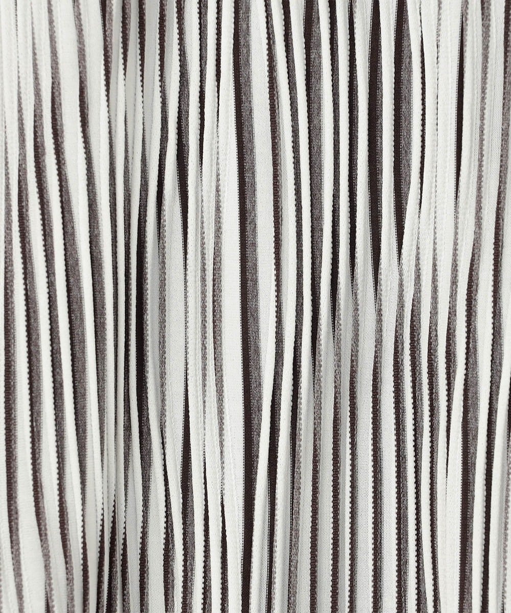 異なるポリエステル糸で編立て染色でランダムなウェーブ柄をストライプ調に表現した独特なジャカード素材を採用。