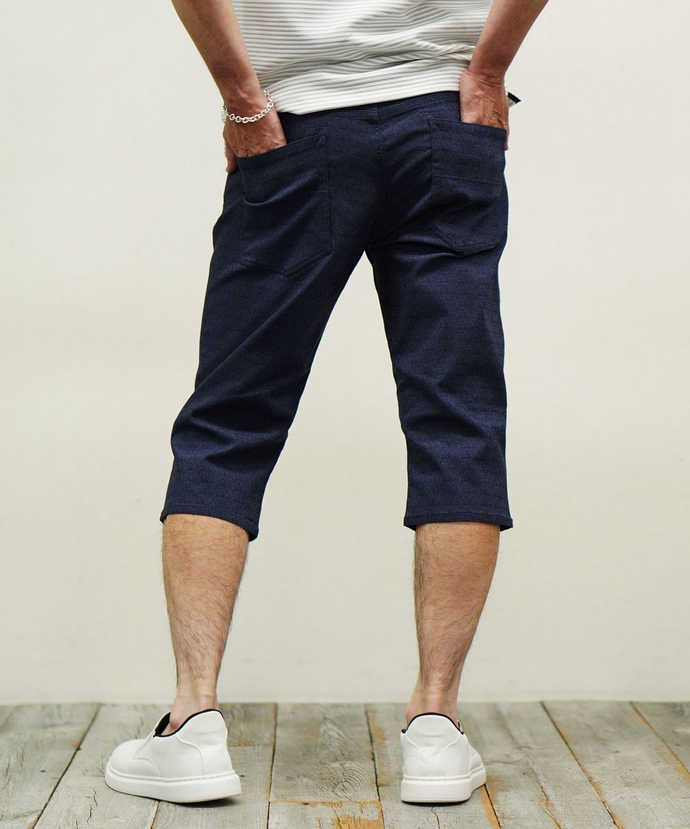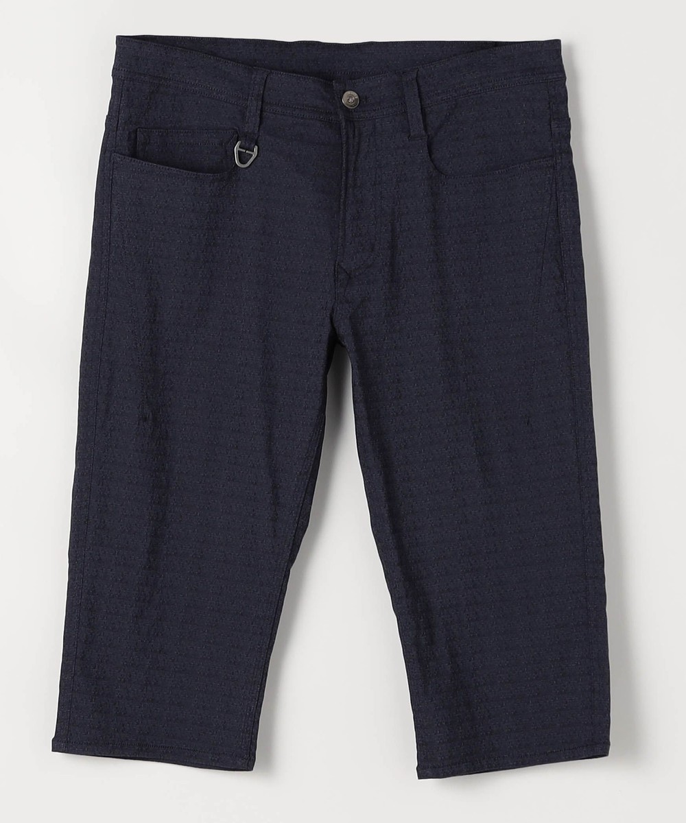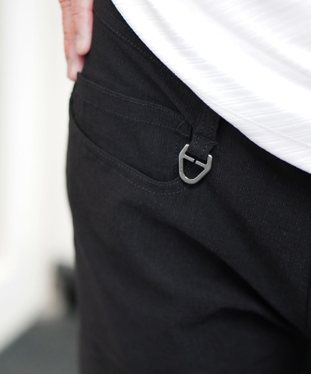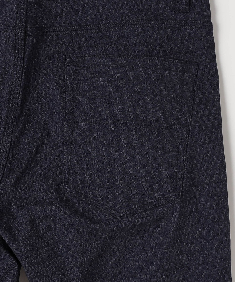 シンプルな5ポケットパンツです。ウエストベルトを素材にあわせて少し伸びる様に縫製し別布にストレッチ裏地を使用していますので穿き着心地も抜群です。フロントボタン、Dカンにはブランドロゴを使用する事で高級感を出しています。
