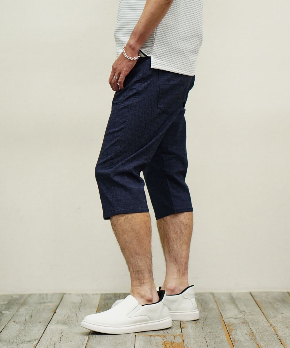 吸湿性の高い再生繊維のレーヨン糸とプリッとしたコシを出すナイロン糸を使用しポリウレタン混の為ストレッチ性の高い素材です。