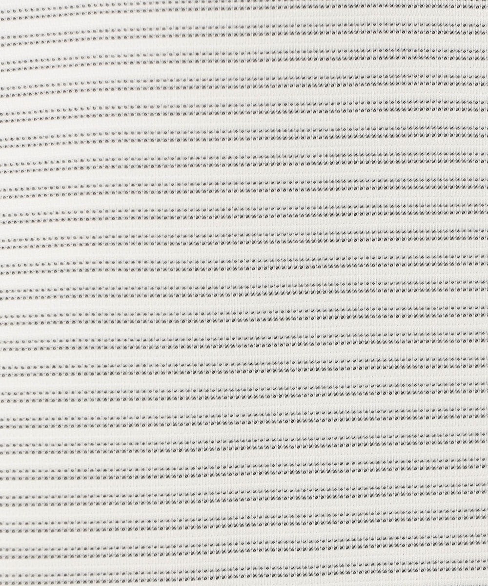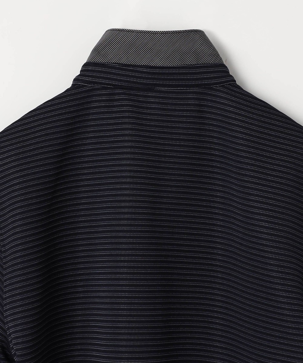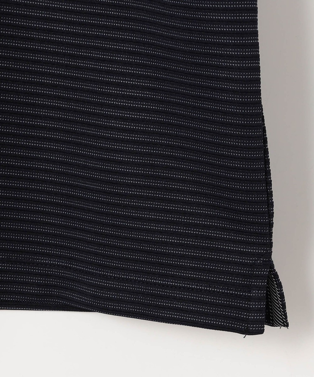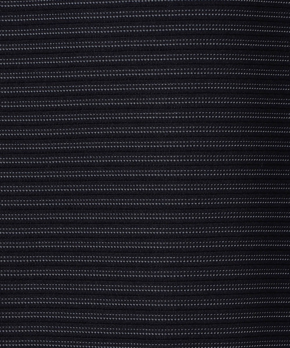 2種類のポリエステル糸で凹凸と質感の違うボーダー柄素材を採用。合繊の為、軽くて張りがありスポーツウエアの様な快適な着用感が特徴。速乾性と防シワ性にも優れています。